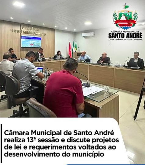 A Câmara Municipal de Santo André realizou, na última sexta-feira (14), a 13ª sessão ordinária do ano, com apresentação de dois Projetos de Lei e diversos requerimentos voltados a infraestrutura, agricultura, esporte, assistência social e cultura.